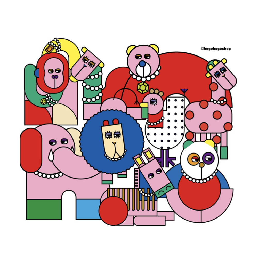 hogehogeshopには、目が個性的で愛らしいキャラクターたちがいっぱい。